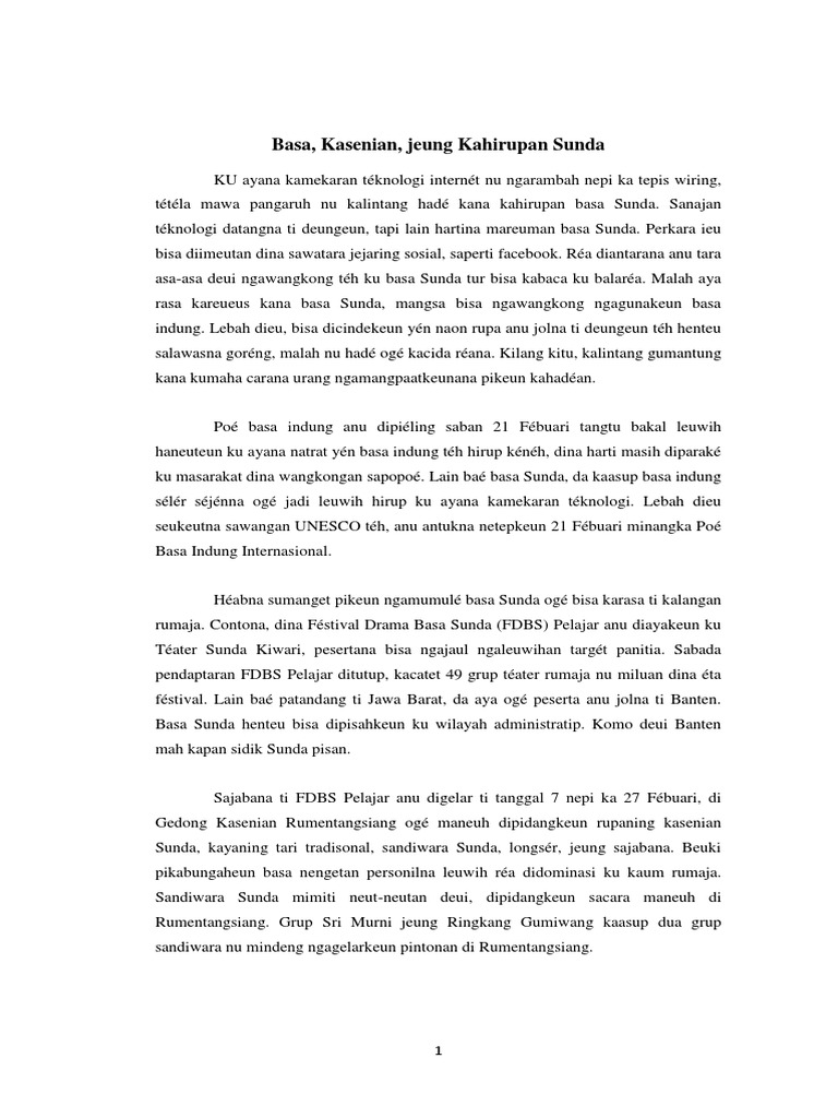 Contoh artikel bahasa sunda adalah artikel dapat dilihat pada lampiran gambar dibawah, dan artikel ini berbahasa sunda. Contoh artikel bahasa indonesia tema teknologi. Dibawah ini merupakan sebuah contoh artikel bahasa sunda tentang teknologi, baik itu yang berhubungan dengan informasi, hasil. Kasenian ogé, geus loba anu hirup teu neut paéh teu. Contoh pidato bahasa sunda tentang perjuangan.